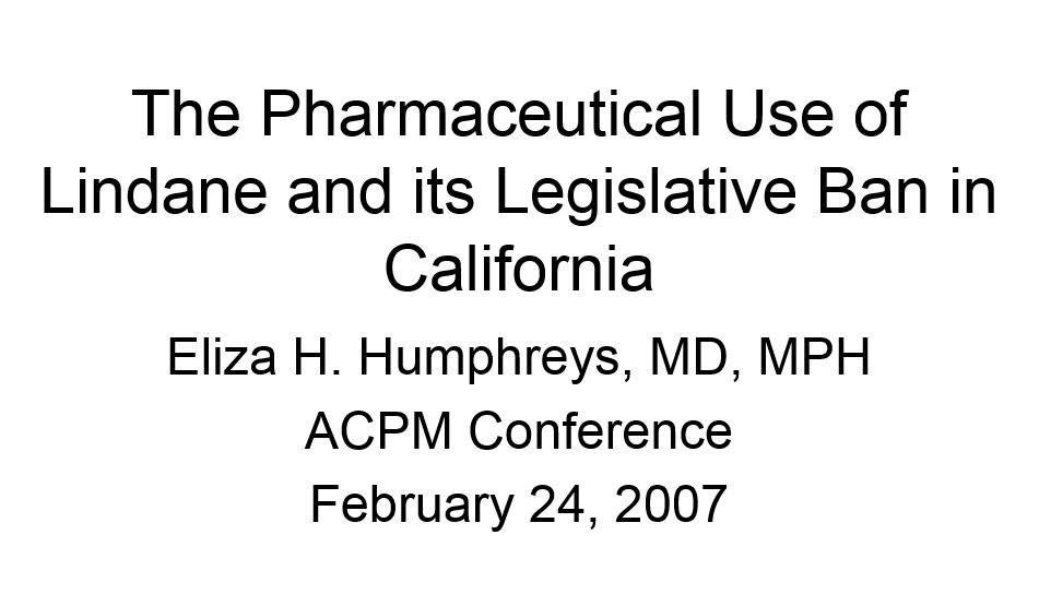 Pharmaceutical Use of Lindane and its Legislative Ban in California